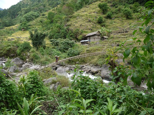 Caption: Bamboo suspension bridge
